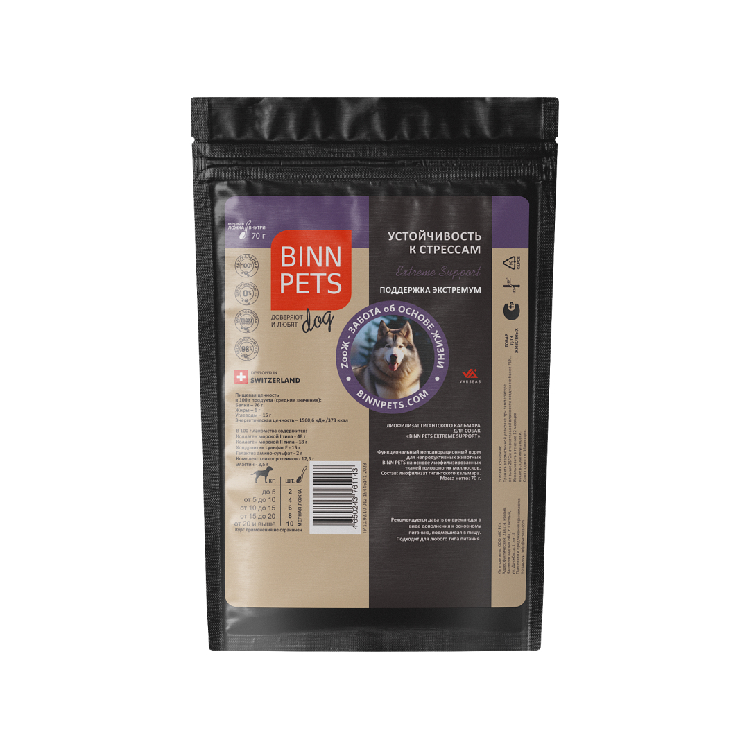 Коллаген Антистресс для СОБАК из гигантского кальмара «BINN PETS Extreme Support» (Лиофилизат) - поддержка организма при стрессах и повышенных нагрузках для собак.