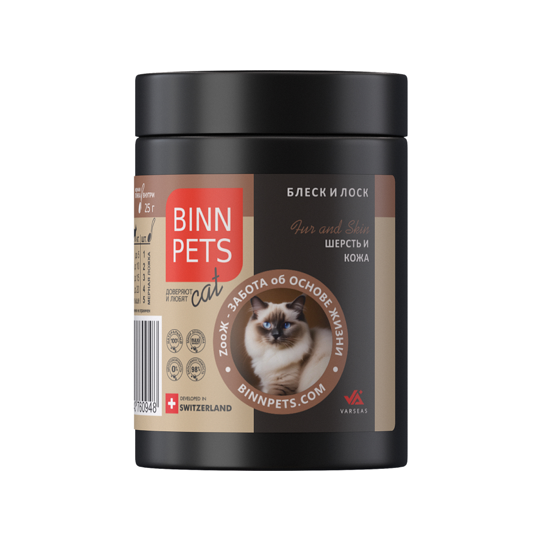 Коллаген для здоровья кожи и крепкой, блестящей шерсти КОШЕК из гигантского кальмара «BINN PETS Fur and Skin» (Лиофилизат)