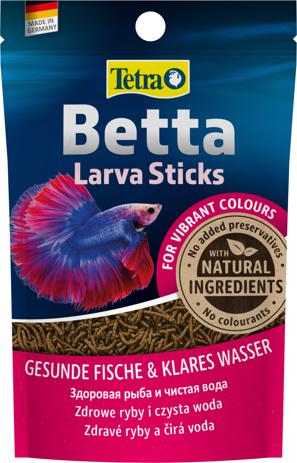 Корм Tetra Betta Larva Sticks предлагает индивидуально разработанное и близкое к природному питание для тропических бойцовых рыбок (петушков) и других лабиринтовых рыб. Корм воспроизводит размер, форму и цвет мотыля, который является одним из любимейших лакомств для рыбок. Палочки плавают на поверхности воды, рыбки легко могут до них добраться. Поскольку Ларва Стикс содержат креветки, они действительно очень вкусные, а высокое содержание каротиноидов усиливает яркую окраску рыб. Высококачественные белки и омега-3 жирные кислоты обеспечивают необходимую энергию для здорового роста. Формула BioActive поддерживает иммунную систему рыб здоровой, и способствует укреплению выносливости, энергии и жизненной силы. Сбалансированный стабильный корм легко поедается, что способствует поддержанию хорошего качества воды.